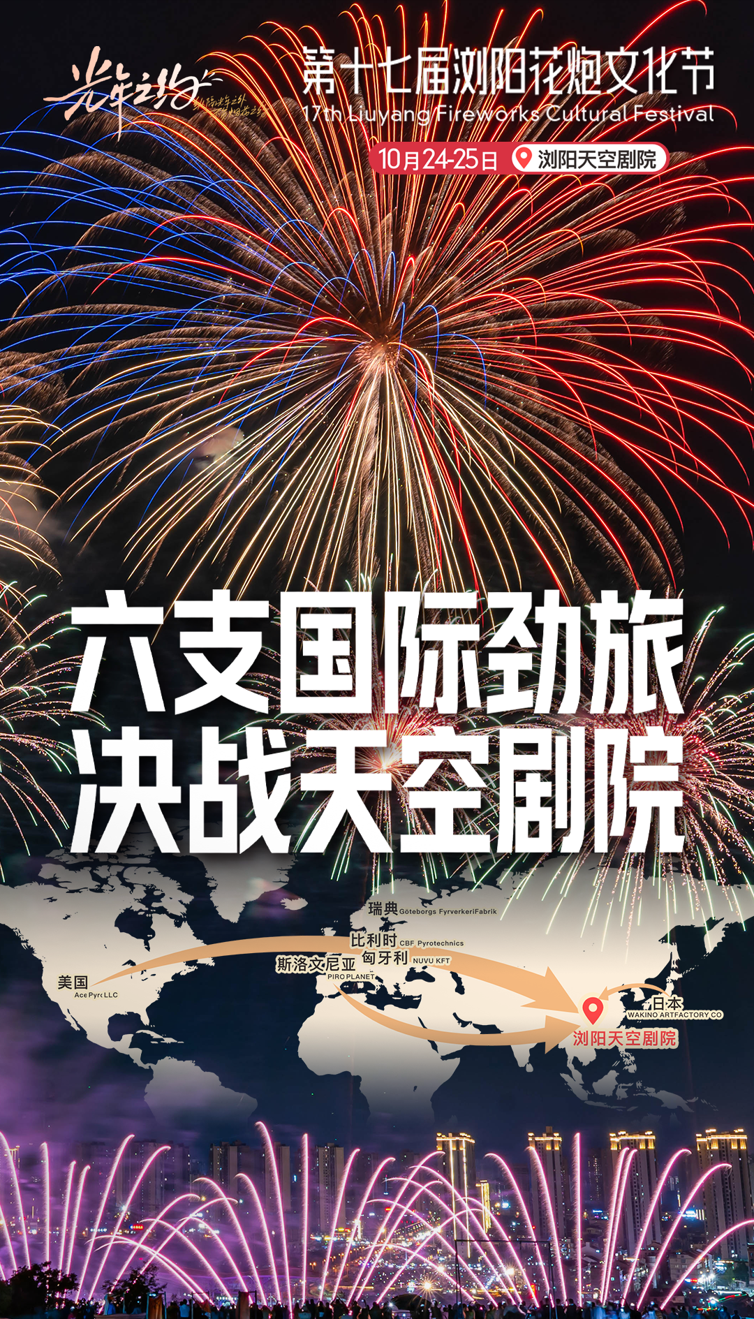 The 17th Liuyang Fireworks Cultural Festival is set to be staged on October 24 and 25, 2025. The 6th Liuyang Fireworks Conference (LFC), a major highlight of the festival, will feature six international teams from the United States, Japan, Hungary, Belgium, Sweden, and Slovenia, who will showcase their pinnacle pyrotechnic creativity and skill on the evening of October 25.