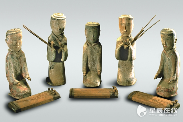 (马王堆汉墓出土的彩绘奏乐俑。)