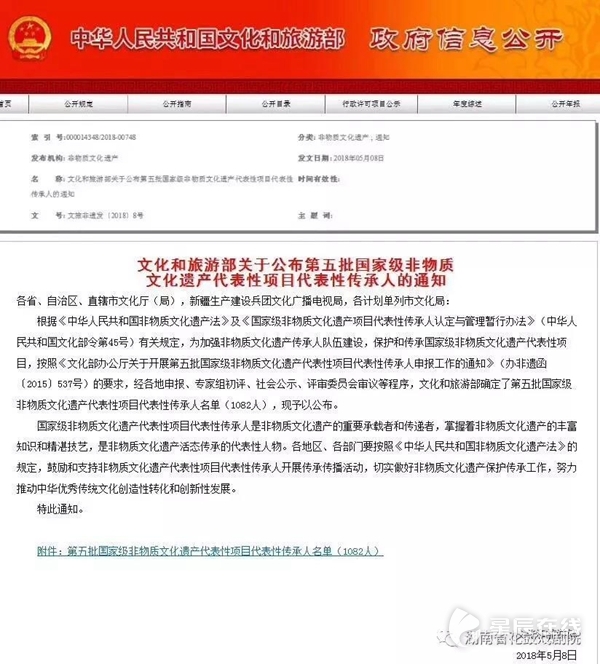 (近日,文化部公布了第五批国家级非物质文化遗产代表性项目代表性传承人名单。)