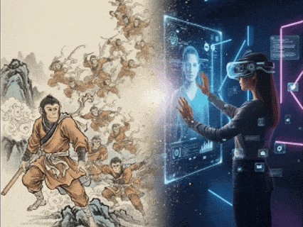 从《西游记》的“毫毛化身”到《梁祝》的“化蝶”,古老叙事里的“分身”本质上是一种精神化身:通过化身/变形去突破现实困境。进入数字时代,我们又迎来另一种“分身”——在镜头、算法和沉浸空间中被看见、被生成、被共创的“第二个我”。