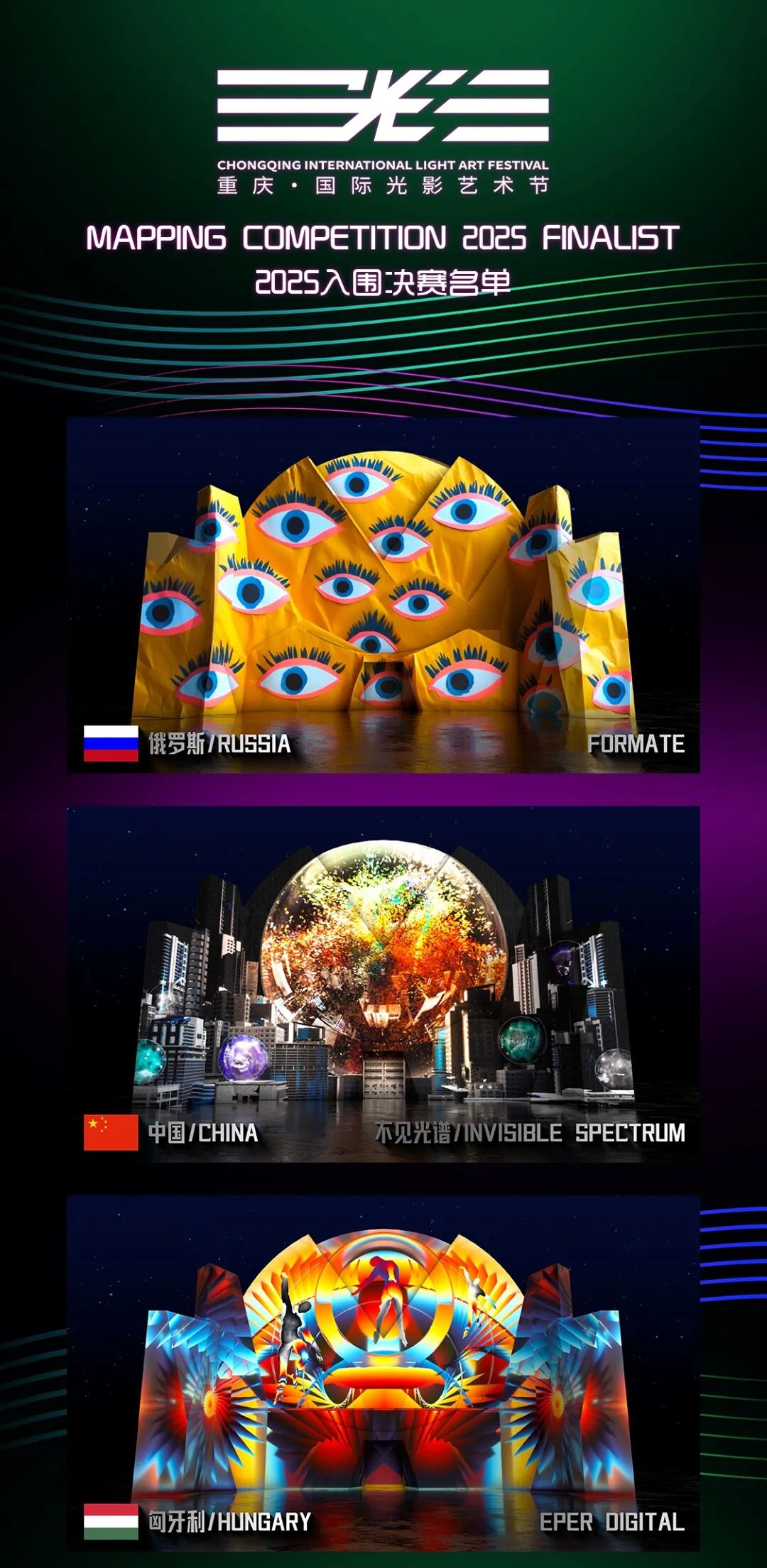 2025第四届重庆国际光影Mapping大赛决赛名单正式公布!来自14个国家的23件作品将齐聚重庆佛罗伦萨小镇,于12月29日起,闪耀山城冬夜!