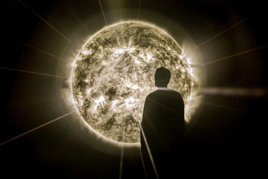 Guillaume Marmin与巴黎墨东天文台联合创作的视听装置作品。作品核心是探索人类与太阳之间复杂而深远的关系。太阳既是生命之源,也承载着我们的恐惧与希望,尤其在面临环境与能源挑战的当下,这种关系更为凸显。 艺术家通过将NASA太阳动力学天文台等数据库的太阳观测数据转化为艺术语言,试图让观众直观地感受到太阳的巨大能量和永恒存在。通过光影的具象化与动态呈现,探讨人类与太阳之间的关系。这一艺术项目通过科学数据与艺术表达的融合,引发观众对自然力量与人类文明依存关系的深层思考。