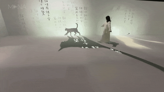 以何景窗《席地而诗》中三首诗:〈一个诗人的活著〉、〈天气好就不在家〉、〈在脸上写诗;在派对读诗〉,以及特别创作《一嗅一吸》共四首诗,创作5分钟沉浸视觉动态影像。 在台南安平的缓慢时光裡,“綉溪安平 XIUXI Anping”以闲适的氛围迎接每位旅人。此次与书法诗人何景窗合作,将她温度饱满的诗句与作品中的猫咪化为引导角色,带领观众穿越光影与文字交织的世界。 团队实地取景安平老街,转化为沉浸式影像,并邀请钢琴音乐家蒋荣宗 ZONG 创作专属乐曲,营造专属于安平的感官体验。2025 年 1 月 10 日至 3 月 3 日,展览“一嗅一吸”邀请旅人走进 360° 环绕投影空间,在二十馀种光影场景间,感受诗句在虚实之间的流动与绽放。