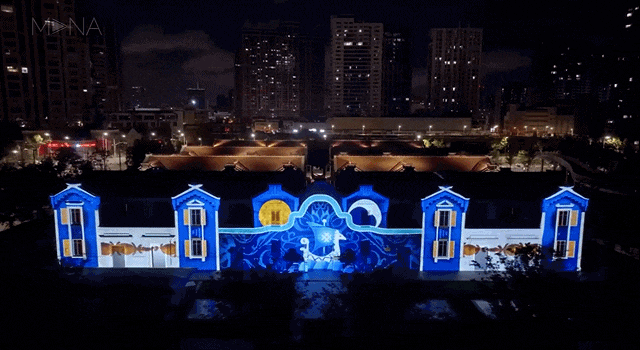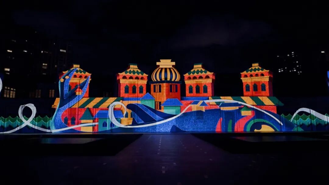 CHUDO YUDO是一部投影映射作品,灵感源于19世纪俄国诗人彼得·叶尔肖夫根据民间传说创作的童话《小驼背马》。作品以奇幻的“鱼鲸”为核心意象——其背上承载着一座繁花盛开的城市,象征蜕变与解放,融合了斯拉夫神话中对自然与幻想的独特表达。通过光影与动态效果,作品将神话中的精灵与场景投射于建筑立面,以现代技术重构古老传说,构建了一场跨越时空的视觉对话,探讨文化记忆与身份认同的永恒主题。该作品为上海国际光影节创作,使用Blender等工具实现建筑投影,巧妙结合声效与动态视觉,让神话在当代都市中焕发新生。
