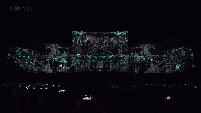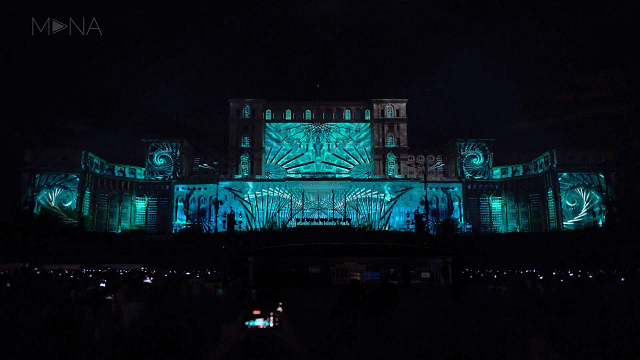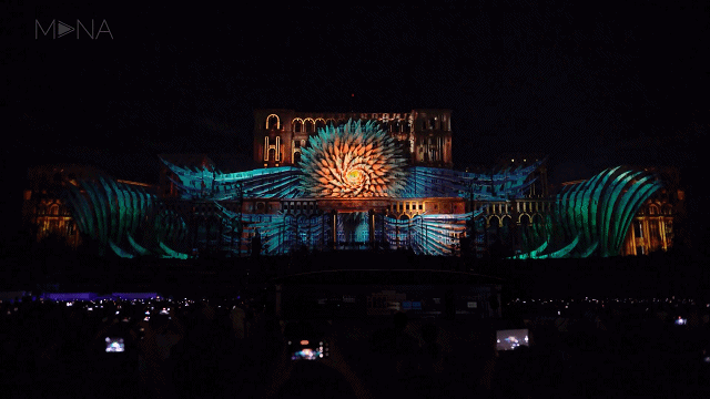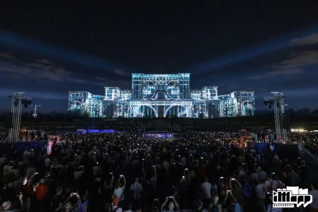 布加勒斯特国会宫殿 23,000 平方米的立面化身为宏伟画布,由 64 台同步投影机和 ELEFAN 原创音乐共同构建,让观众沉浸在影像与声音的感官对话之中。