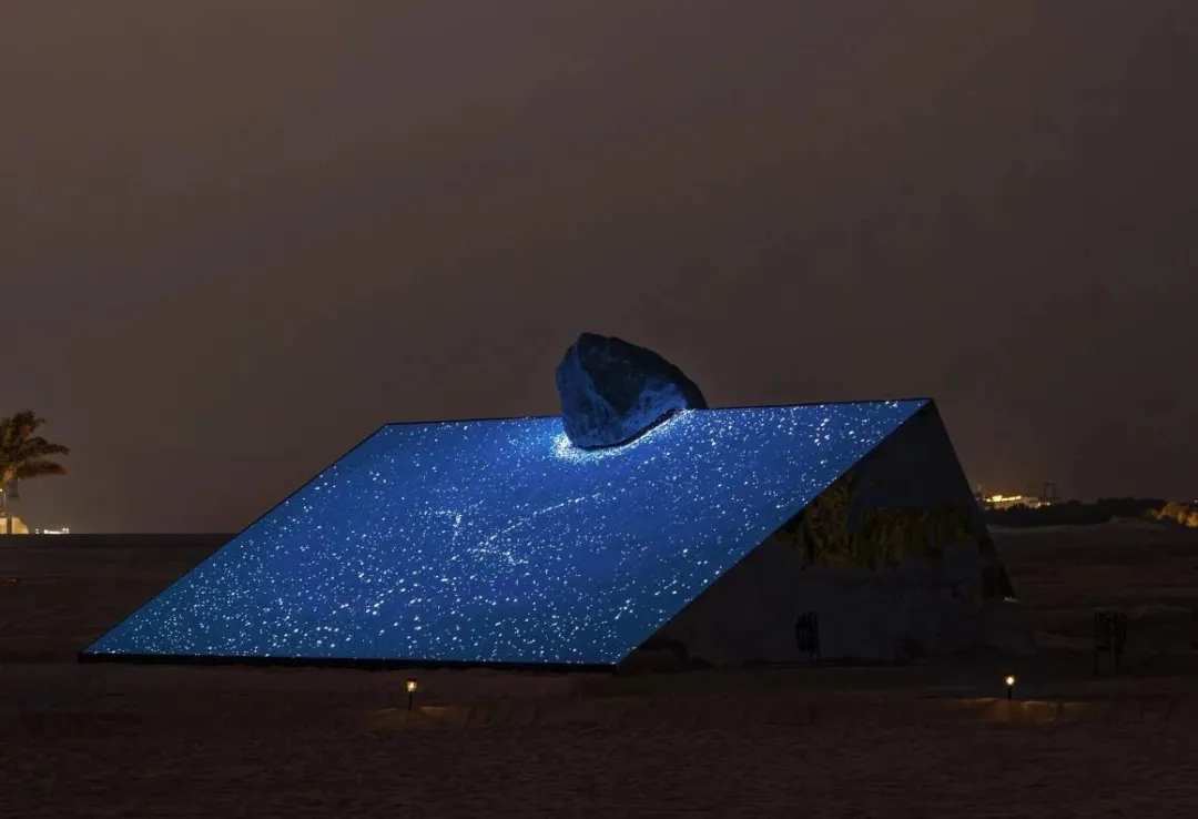 在 2025年阿布扎比玛纳尔艺术中心,数字艺术家兼设计师 Ezequiel Pini携手 Plan X Gallery,呈现沉浸式装置作品《Skyward》。作品置身于广袤静谧的沙漠之中,将雕塑、科技与自然景观融为一体,带来独特的反思体验。作品以一块巨大的倾斜镜面和一块产自迪拜附近的手工雕刻辉长岩为主要元素, 探讨 了升华、感知、时间以及尘世与天界的关系等主题,该装置邀请参观者步入一个不断变化的视野,在那里,光线、天空和人体形态交汇融合。