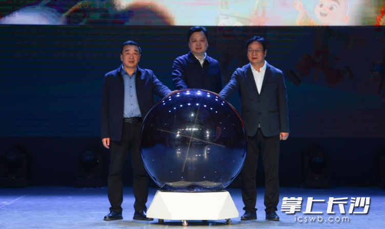 开幕仪式上,湖南省文化和旅游厅党组成员、副厅长廖健,湖南艺术职业学院党委书记李越胜,党委副书记、校长周邦春等与会嘉宾共同点亮象征非遗传承的“智慧球”,整个会场被温暖的光芒笼罩,寓意湖湘文明在数字时代焕发新的生机。