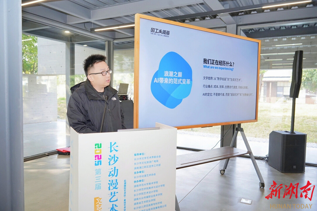 在第三届长沙动漫艺术创作分享会上,业内知名人士就动漫创作技巧、市场趋势分析及未来发展方向进行了深入探讨。例如,南华大学客座教授、硕导、博与文品牌设计有限公司主理人段文建的分享主题为《用品牌思维塑造品牌IP》,详细阐述了从功能价值到情感共鸣的品牌IP化进阶之路。湖南江辉文化产业发展有限公司主理人郭斌介绍了《湖湘动漫的破圈之路》,从“浏浏阳阳”看城市动漫IP的无限可能。长沙田工头网络科技有限公司创始人田盛宇则以AI技术为切口,讲述AI在动漫游戏美术中的实践与前瞻。
