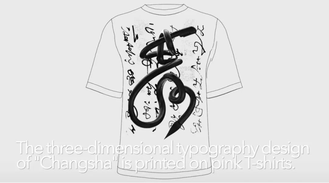 这份气质,也渗进了他所有与家乡有关的创作之中:“来自家乡的红包”,用极简的镂空轮廓,让一张百元钞票里悄悄露出毛主席的微笑,将湖南人的家国情怀以幽默而深情的方式呈现,一经发布,刷屏全国;以怀素草书“长沙”二字为核心设计的T恤,将千年前的书法用三维数字技术重构,让文字化作“笔走龙蛇”的艺术形态,实现了长沙文化的跨语言、跨国界传播。